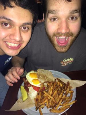 Uncle Fred’s Ultimate BLT-$8- “Applewood smoked bacon, tomatoes, butter lettuce, homemade mayonnaise, sunny side up eggs, toasted country sourdough bread”. This sandwich and fries for the price is a great deal! My friend Harry loved this sandwich so much and was so happy we decided to eat at Ormsby’s (this was his and Diego’s first time there).