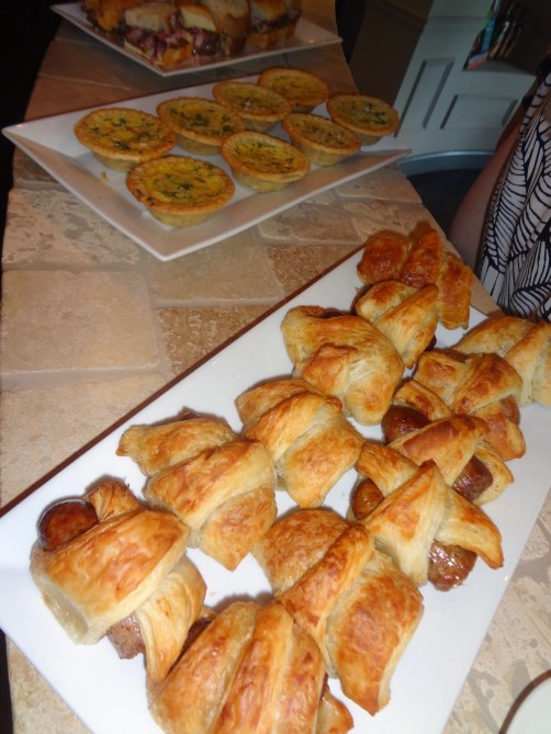 Left: Sausage pigs in a blanket- Flaky dough on the outside, sweet sausage on the inside!