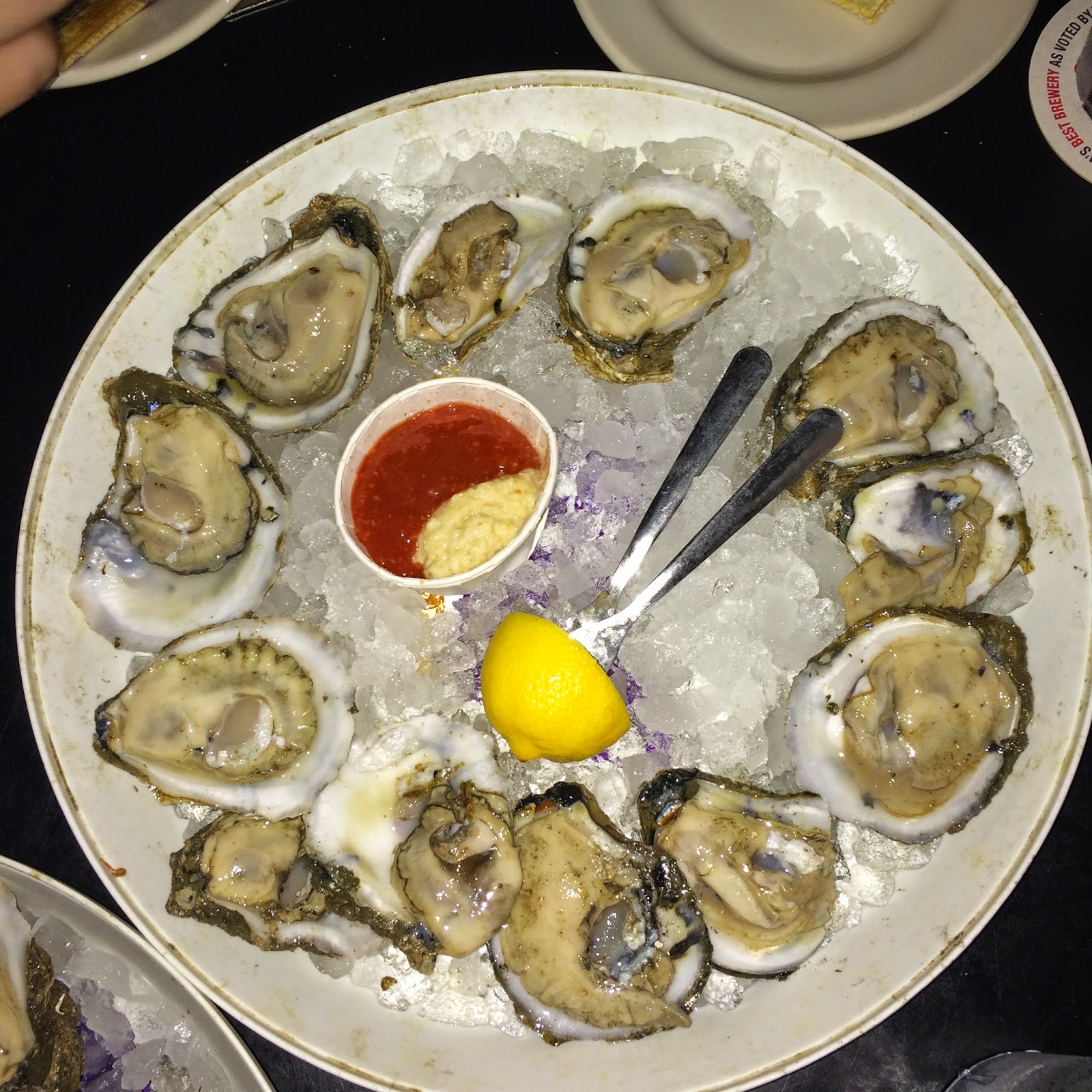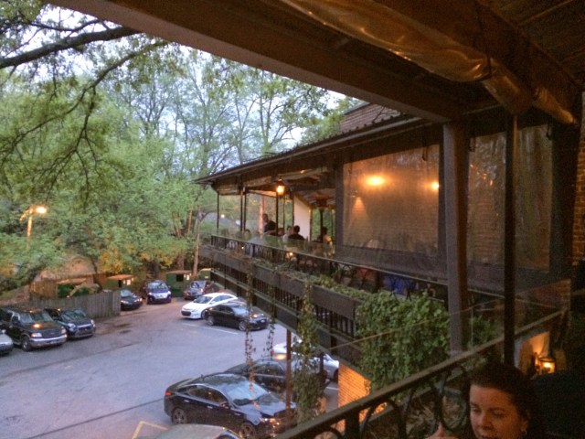 Now lets get down to business, today I’m talking seafood, and by seafood I mean oysters. Fontaine’s Oyster House to be exact. This awesome restaurant is located in the Virginia Highlands and is on the busy North Highland Avenue. Emily, our friend Morgan, and I decided it was high time we tried this place out and chose their “$5 dollars for a dozen” oyster Tuesday to check it out. The night started off with a 35-45 minute wait, but we were able to grab a drink at one the many nearby bars. The atmosphere of Fontaine’s is absolutely perfect. A dimly lit, busy bar area opens up to a huge outdoor porch overlooking some trees (picture below). None of us realized there was outdoor seating, so it was a great surprise when we were led back to our seats.