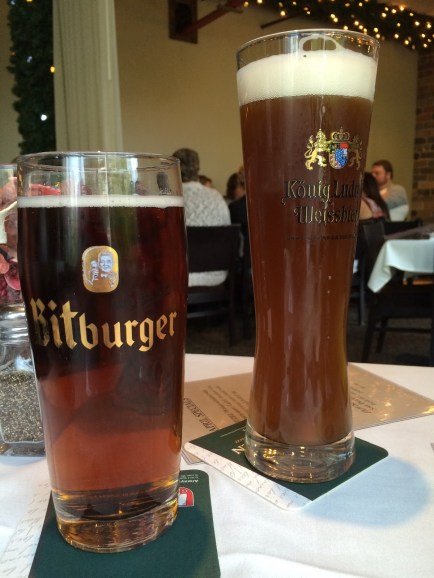 Alex got the Konig Ludwig Hefeweizen: “A royal Bavarian hefeweizen [with a] perfect balance of banana and clove.” Hefeweizen is a wheat beer and the hint of banana in this beer was subtle but really good!