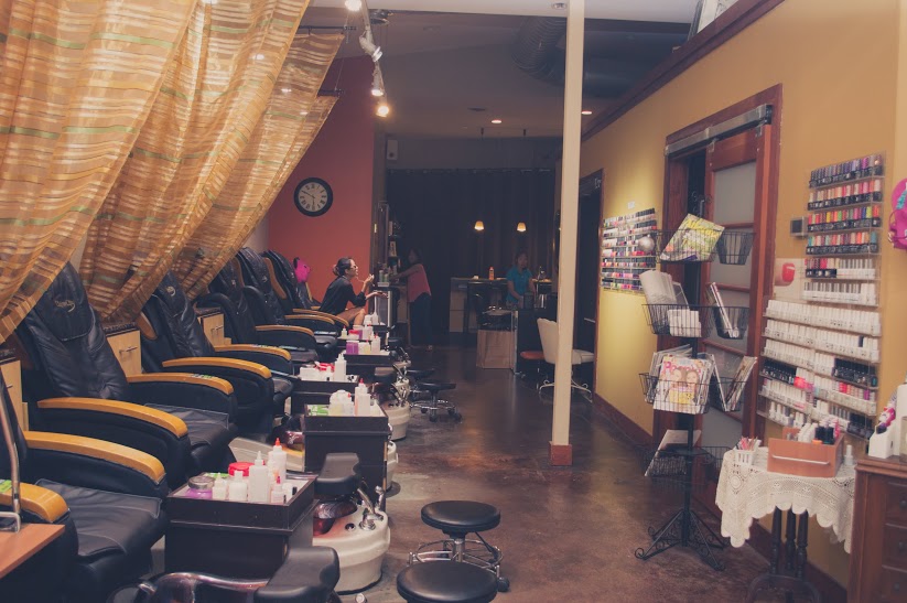 Hello everyone! I am going to tell you all about an amazing salon in Little Five Points today! I went to Salon Five two weeks ago for a bloggers’ “Girls Night Out” and thought it was wonderful!! It is located at 506 Moreland Ave NE, Atlanta, GA 30307. The staff is so nice and they offer more services than any salon I’ve ever been to. At Salon Five, you can get pedicures, manicures, facials, threading, waxes, lash & brow tinting, and massages. You can find the prices of all of these services on the Salon Five website.