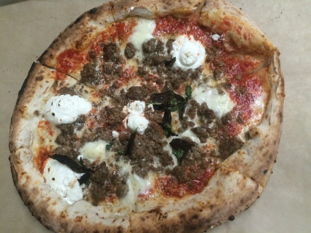 My friends and I went on a week night and ordered the Lasagna Pizza ($20) which had meatballs, ricotta, and romano as toppings (shown below). The meatballs were really flavorful and their texture went perfectly with the texture of the ricotta cheese. The crust is purposely burnt a little but is so soft and doughy. I would easily order this pizza again. My friend Harry also recommended the San Gennaro and Bianca pizza! (See the full menu here.)