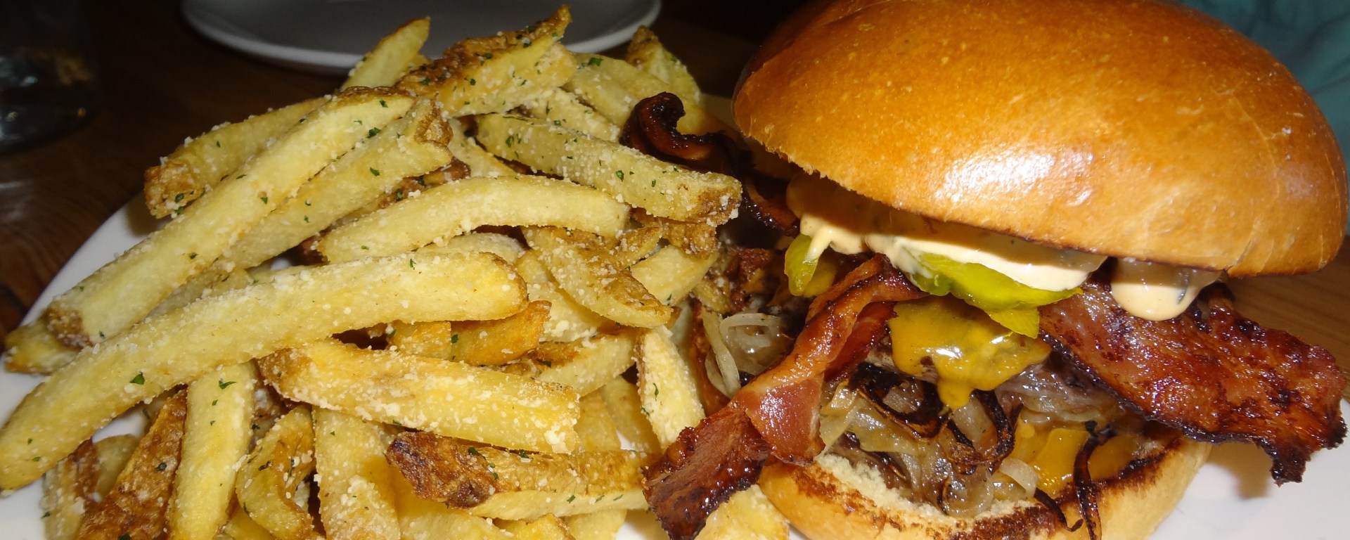 Double Stack Burger-$15- Made with sweet pickles, tavern bacon, shaved onion, cheddar, and special sauce. Harry ordered this dish and I don’t think I’ve seen him finish a burger as fast as he finished this one. I tried part of it and we both thought it was so delicious! I think it’s really unique that they use sweet pickles which ends up contrasting the cheese and bacon perfectly! This also comes with an abundant side of Tavern Fries which are made with parmesan, fresh herbs, and tavern special sauce. These fries were so so good and I wish I was eating them right now.